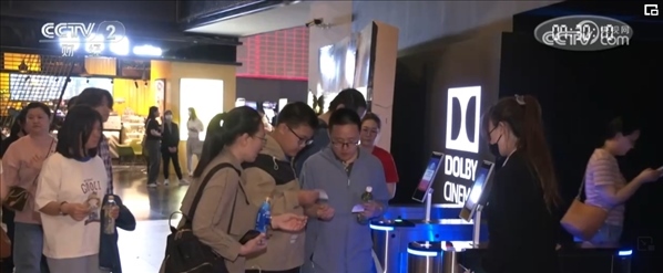 記者在北京五棵松的一家影院看到,多個放映廳檢票處觀眾正排著長隊(duì)檢票入場。