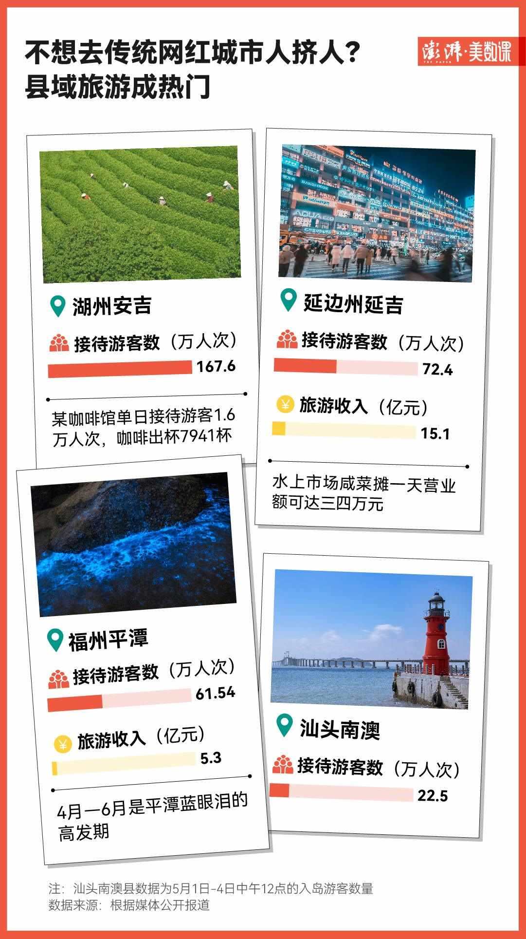 不僅如此,旅游下沉化的趨勢已經(jīng)來到了縣級市。湖州安吉在這個(gè)“五一”假期就收獲了167.6萬人次的游客數(shù)量。據(jù)“安吉旅游”公眾號,當(dāng)?shù)啬晨Х瑞^單日接待游客1.6萬人次,咖啡出杯7941杯。