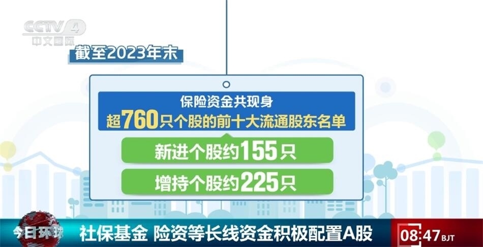 央視網(wǎng)消息:A股2023年年報日前披露結束,上市公司的前十大流通股東情況顯示,包括社保基金、保險資金、合格境外機構投資者等在內(nèi)的長線資金入市步伐正在不斷加快,A股中長期投資力量不斷壯大。