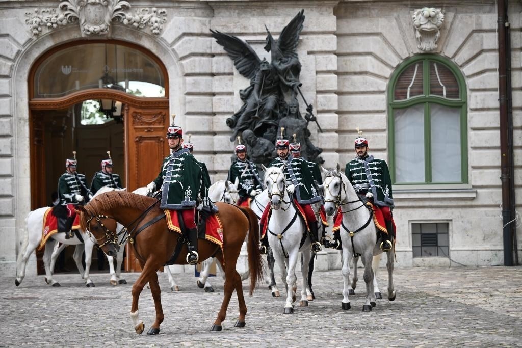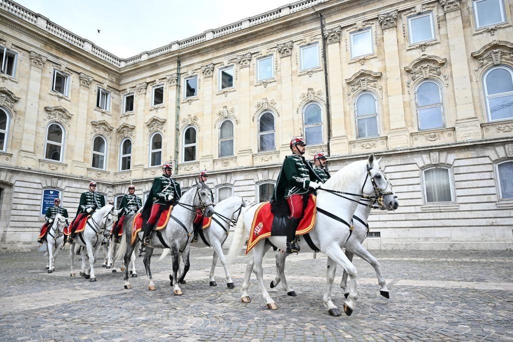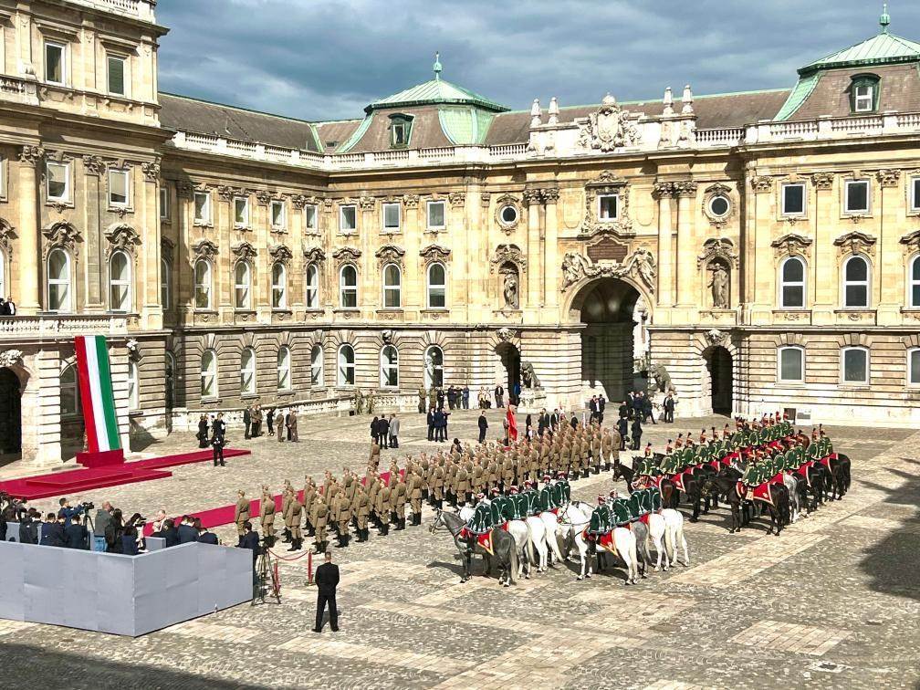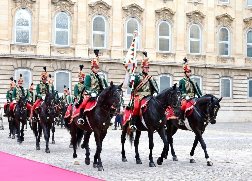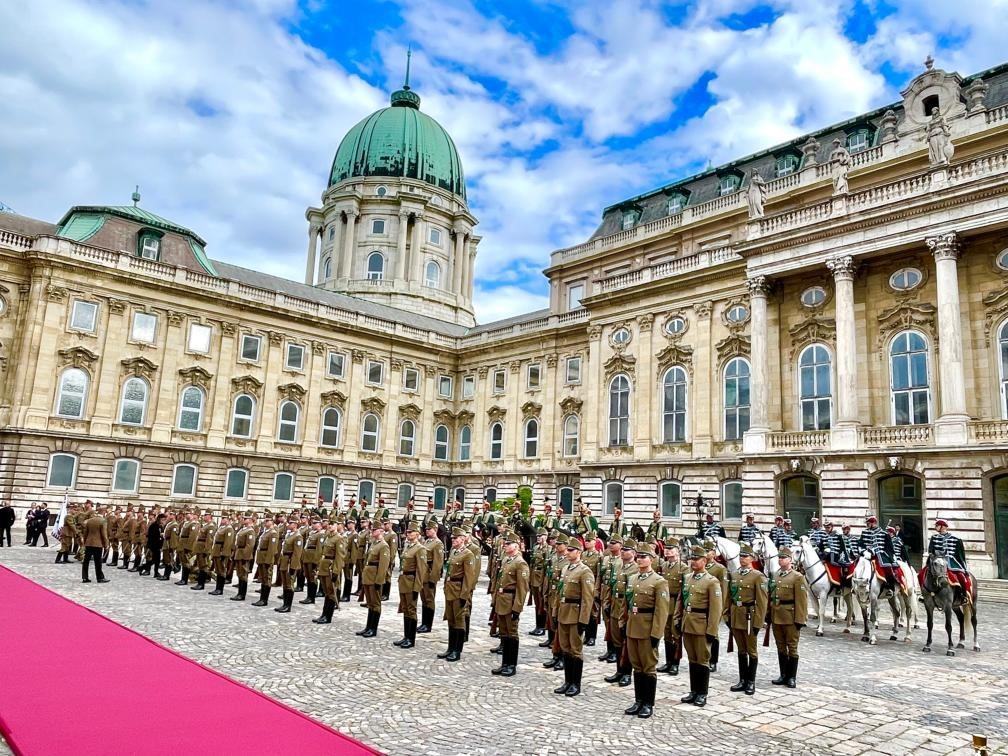 初夏時(shí)節(jié)的布達(dá)佩斯陽光明媚,古老宏偉的布達(dá)王宮莊嚴(yán)矗立,中匈兩國(guó)國(guó)旗相映成輝。習(xí)近平和夫人彭麗媛乘坐的國(guó)賓車隊(duì)在匈牙利禮賓馬隊(duì)護(hù)衛(wèi)下緩緩駛?cè)氩歼_(dá)王宮內(nèi)庭。舒尤克總統(tǒng)夫婦和歐爾班總理夫婦熱情迎接。