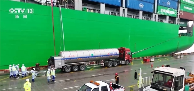5月10日,中國船舶集團自研的全球首套全流程船舶碳捕集系統(tǒng)所生產(chǎn)的第一罐二氧化碳產(chǎn)品正式交付。