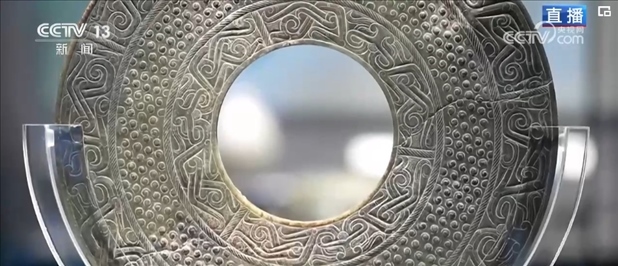 通過(guò)8K超高清攝像機(jī)可以清晰看到,鎮(zhèn)館之寶魯國(guó)大玉璧的紋飾區(qū)域多達(dá)3層,內(nèi)圈和外圈是象征權(quán)力的龍紋,中間這一圈是象征五谷豐登的谷紋。玉璧是祭天的禮器,作為戰(zhàn)國(guó)時(shí)期形制最大的玉璧,它充分展現(xiàn)了魯國(guó)對(duì)禮制和農(nóng)業(yè)的重視。