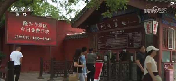 在正定縣隆興寺、趙云廟景區(qū)也在入口醒目的位置擺出免門票惠民的告示,慕名前來(lái)的游客絡(luò)繹不絕。