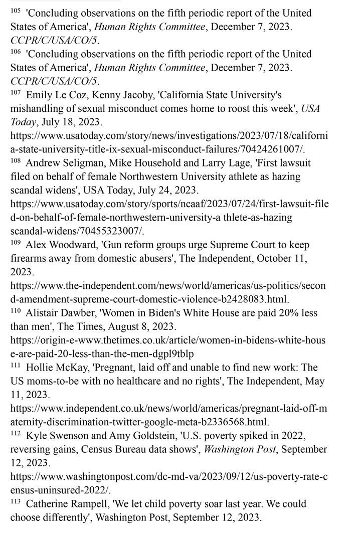 美國婦女兒童權利長期遭受系統(tǒng)性侵犯,保障性別平等的憲法規(guī)定付之闕如,至今未批準聯(lián)合國《消除對婦女一切形式歧視公約》,而且是聯(lián)合國會員國中唯一沒有批準《兒童權利公約》的國家。美國參議院2023年4月否決了保障性別平等的憲法修正提案。美國每年約有5.4萬名婦女因遭受懷孕歧視而失業(yè)。超過220萬育齡婦女無法獲得產(chǎn)科護理。至少有21個州命令禁止或嚴格限制墮胎。孕產(chǎn)婦死亡人數(shù)近20年來增加了一倍多。職場、校園、家庭等多領域的性暴力層出不窮。兒童的生存權與發(fā)展權堪憂。大量兒童被排除出醫(yī)療補助計劃。槍支暴力成為兒童死亡的主要原因。毒品濫用在青少年群體中蔓延。46個州被發(fā)現(xiàn)瞞報約3.48萬例寄養(yǎng)兒童失蹤案件。