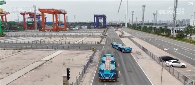 在堆場和貨輪之間有92個承擔(dān)運輸任務(wù)的智能機器人,它們通過激光雷達、5G技術(shù),轉(zhuǎn)彎、減速、避讓,每跑一趟與周邊設(shè)備會進行上百次信息交互。