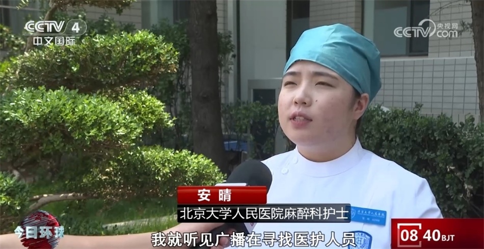 北京大學人民醫(yī)院麻醉科護士安晴稱:“進了地鐵閘機門之后,我就聽見廣播在尋找醫(yī)護人員 ,我就趕緊從樓梯走了下去。當時患者已經(jīng)沒有反應了,已經(jīng)呼之不應了,我就立馬上前查看了一下她的瞳孔,當時瞳孔已經(jīng)散大了,然后摸了一下頸動脈的搏動,也是消失的,我就判定她為心臟驟停,然后緊急對她進行了胸外按壓。”
