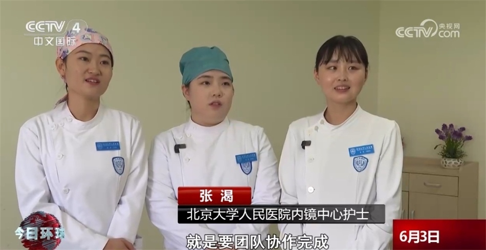 北京大學人民醫(yī)院內(nèi)鏡中心護士張渴稱:“因為老干這個,知道下一步怎么做,就是要團隊協(xié)作完成?!?/p>