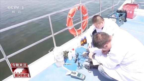 現(xiàn)場(chǎng)水樣監(jiān)測(cè)和分析顯示,水溫是32℃,PH是8.8,電導(dǎo)率是3.03,內(nèi)蒙古自治區(qū)環(huán)境監(jiān)測(cè)總站巴彥淖爾分站副站長賈國慶介紹,PH和溶解氧都在合理值。