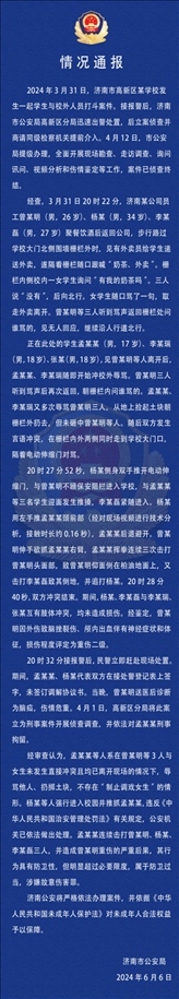 ·濟(jì)南警方通報學(xué)生與醉漢沖突被刑拘案:涉事學(xué)生屬于防衛(wèi)過當(dāng)。