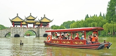 文旅融合市民和游客乘坐游船游覽揚(yáng)州瘦西湖。本報記者 雷 聲攝