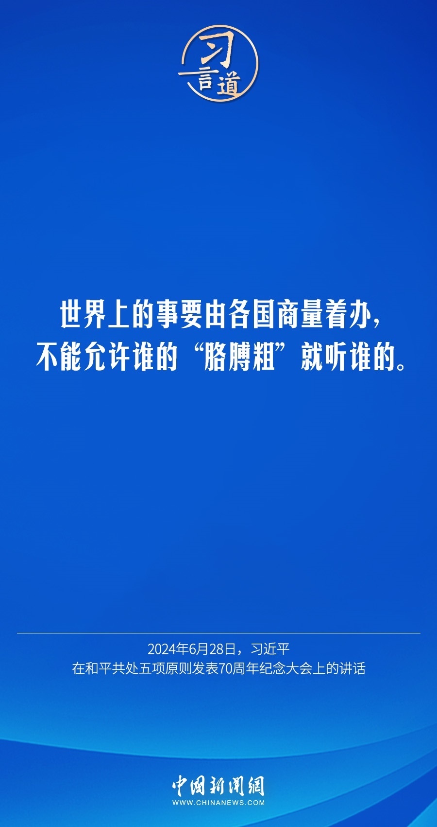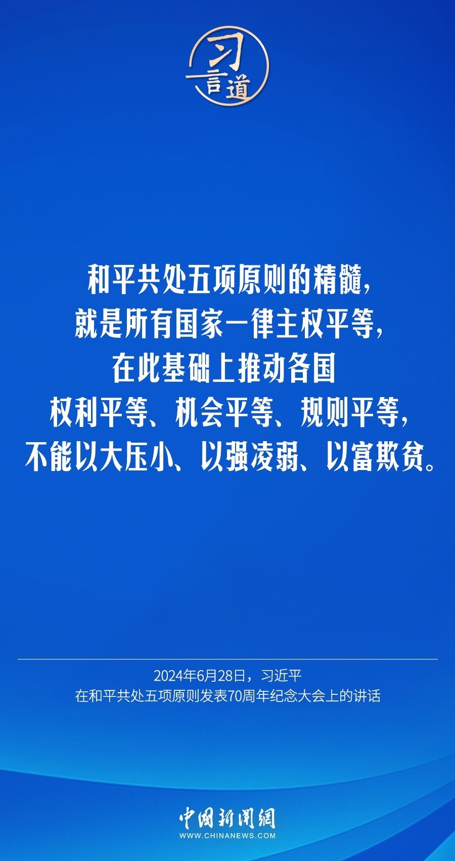 6月28日,國(guó)家主席習(xí)近平在北京人民大會(huì)堂出席和平共處五項(xiàng)原則發(fā)表70周年紀(jì)念大會(huì)并發(fā)表重要講話。習(xí)近平指出——