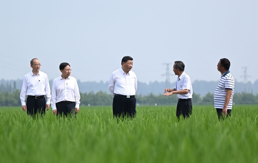 2022年6月8日上午,習(xí)近平在四川眉山市東坡區(qū)太和鎮(zhèn)永豐村高標(biāo)準(zhǔn)水稻種植基地考察,了解水稻試驗(yàn)育種和種植推廣情況。習(xí)近平強(qiáng)調(diào):推進(jìn)農(nóng)業(yè)現(xiàn)代化,既要靠農(nóng)業(yè)專(zhuān)家,也要靠廣大農(nóng)民。要加強(qiáng)現(xiàn)代農(nóng)業(yè)科技推廣應(yīng)用和技術(shù)培訓(xùn),把種糧大戶(hù)組織起來(lái),積極發(fā)展綠色農(nóng)業(yè)、生態(tài)農(nóng)業(yè)、高效農(nóng)業(yè)。我們有信心、有底氣把中國(guó)人的飯碗牢牢端在自己手中。