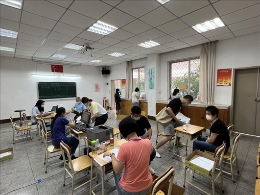廣州市越秀區(qū)教育局現(xiàn)場審核返區(qū)生辦理材料,采用“提前網(wǎng)上預約、現(xiàn)場分批辦理”的方式進行。廣州市越秀區(qū)教育局供圖