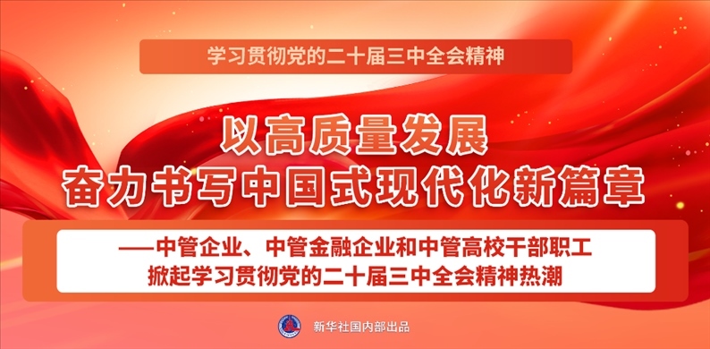 點(diǎn)擊標(biāo)題看詳情:以高質(zhì)量發(fā)展奮力書寫中國式現(xiàn)代化新篇章——中管企業(yè)、中管金融企業(yè)和中管高校干部職工掀起學(xué)習(xí)貫徹黨的二十屆三中全會(huì)精神熱潮