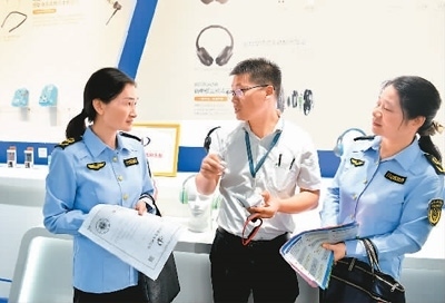 湖北省咸寧市通城縣立足企業(yè)創(chuàng)新創(chuàng)造,持續(xù)優(yōu)化營商環(huán)境。目前,該縣已建成省級知識(shí)產(chǎn)權(quán)保護(hù)站2個(gè),幫助企業(yè)更好解決專利服務(wù)、知識(shí)產(chǎn)權(quán)融資等需求。圖為該縣經(jīng)濟(jì)開發(fā)區(qū)一家民營企業(yè)內(nèi),市場監(jiān)管工作人員在了解企業(yè)專利產(chǎn)品生產(chǎn)狀況。劉建平攝(人民視覺)