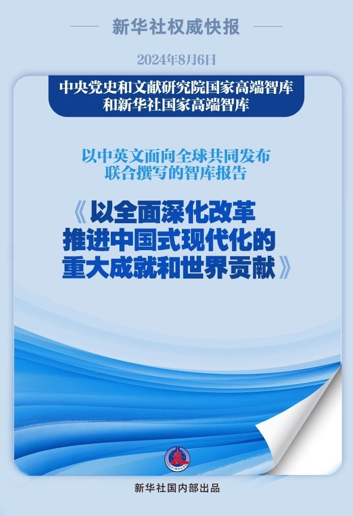 “紅廳論壇:讀懂中國(guó)共產(chǎn)黨二十屆三中全會(huì)”主題研討會(huì)8月6日在中國(guó)共產(chǎn)黨歷史展覽館紅色大廳舉行。會(huì)上,中央黨史和文獻(xiàn)研究院國(guó)家高端智庫(kù)和新華社國(guó)家高端智庫(kù)以中英文面向全球共同發(fā)布聯(lián)合撰寫(xiě)的智庫(kù)報(bào)告《以全面深化改革推進(jìn)中國(guó)式現(xiàn)代化的重大成就和世界貢獻(xiàn)》。
