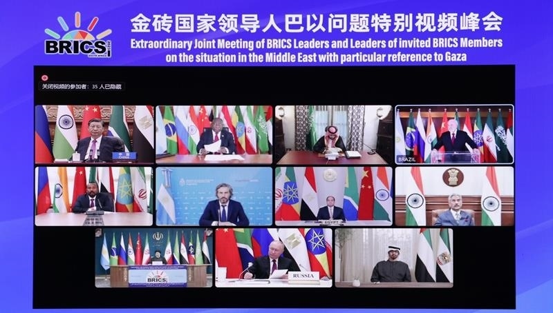 去年11月,金磚國家領導人巴以問題特別視頻峰會召開,與會領導人就應對巴以新一輪沖突造成的挑戰(zhàn)并持續(xù)推動巴以問題公正持久解決展開交流,協(xié)調立場,發(fā)出呼吁,達成共識,并采取積極行動,發(fā)出清晰的正義之聲、和平之聲。
