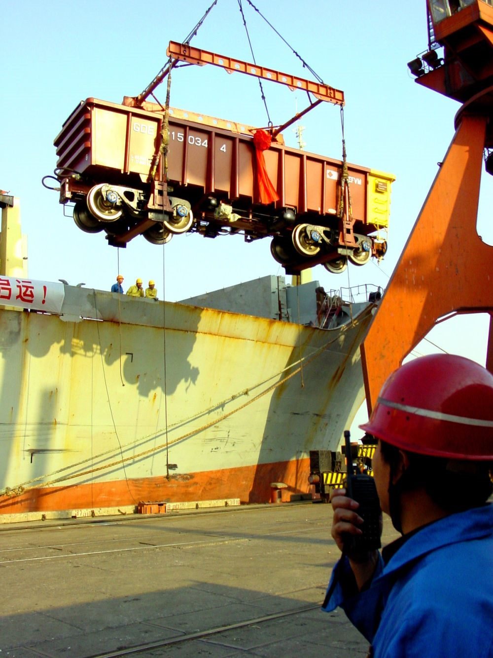 2003年10月23日,中國(guó)向巴西出口的首批鐵路貨車從上海張華浜港啟運(yùn)。這是中國(guó)首次向南美出口鐵路貨車。