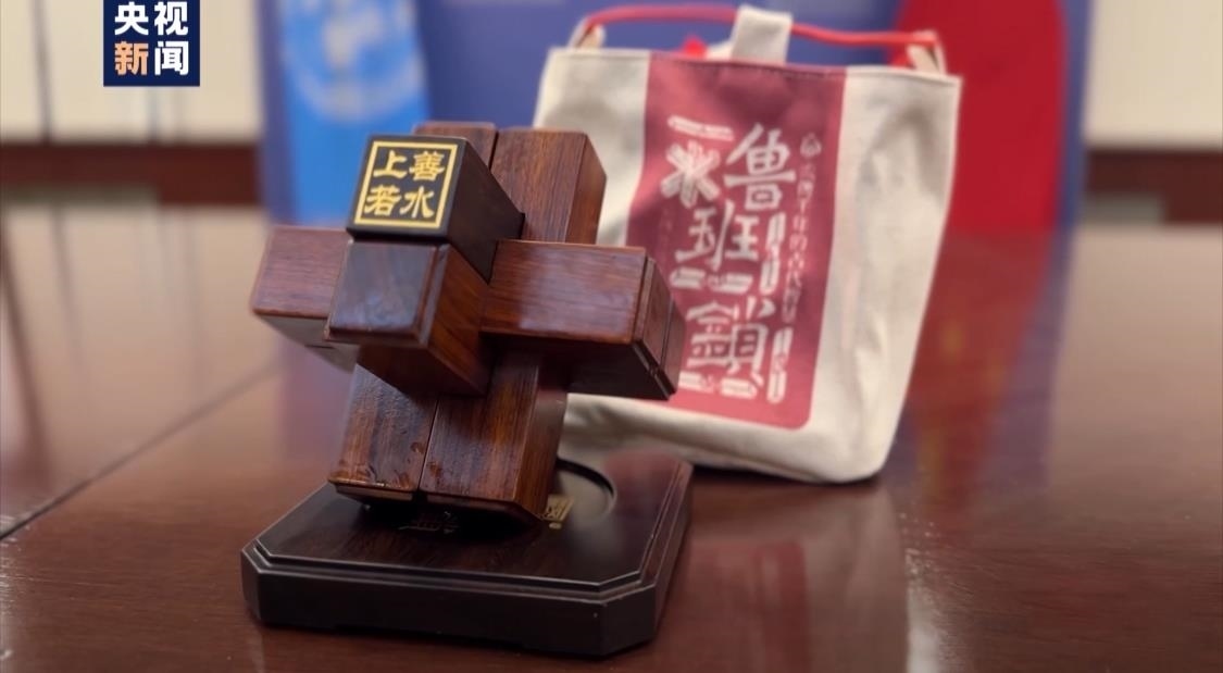 六根棕色木條相互巧妙鎖定,構成一個穩(wěn)定的整體。這是中國擔任2023年11月聯(lián)合國安理會輪值主席首日向安理會成員贈送的禮品——魯班鎖。