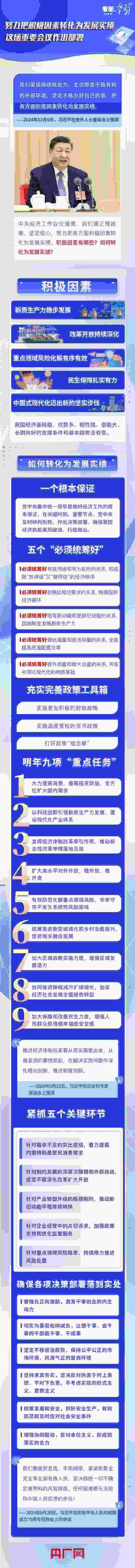 今年是實(shí)現(xiàn)“十四五”規(guī)劃目標(biāo)任務(wù)的關(guān)鍵一年。“經(jīng)濟(jì)社會發(fā)展主要目標(biāo)任務(wù)即將順利完成”“一年來的發(fā)展歷程很不平凡,成績令人鼓舞”……此次會議對即將過去的2024年經(jīng)濟(jì)工作作出總結(jié)分析。明年中國經(jīng)濟(jì)怎么干?《看圖學(xué)習(xí)》欄目梳理總書記部分重要論述,結(jié)合中央經(jīng)濟(jì)工作會議要點(diǎn),與您一起學(xué)習(xí)領(lǐng)悟。