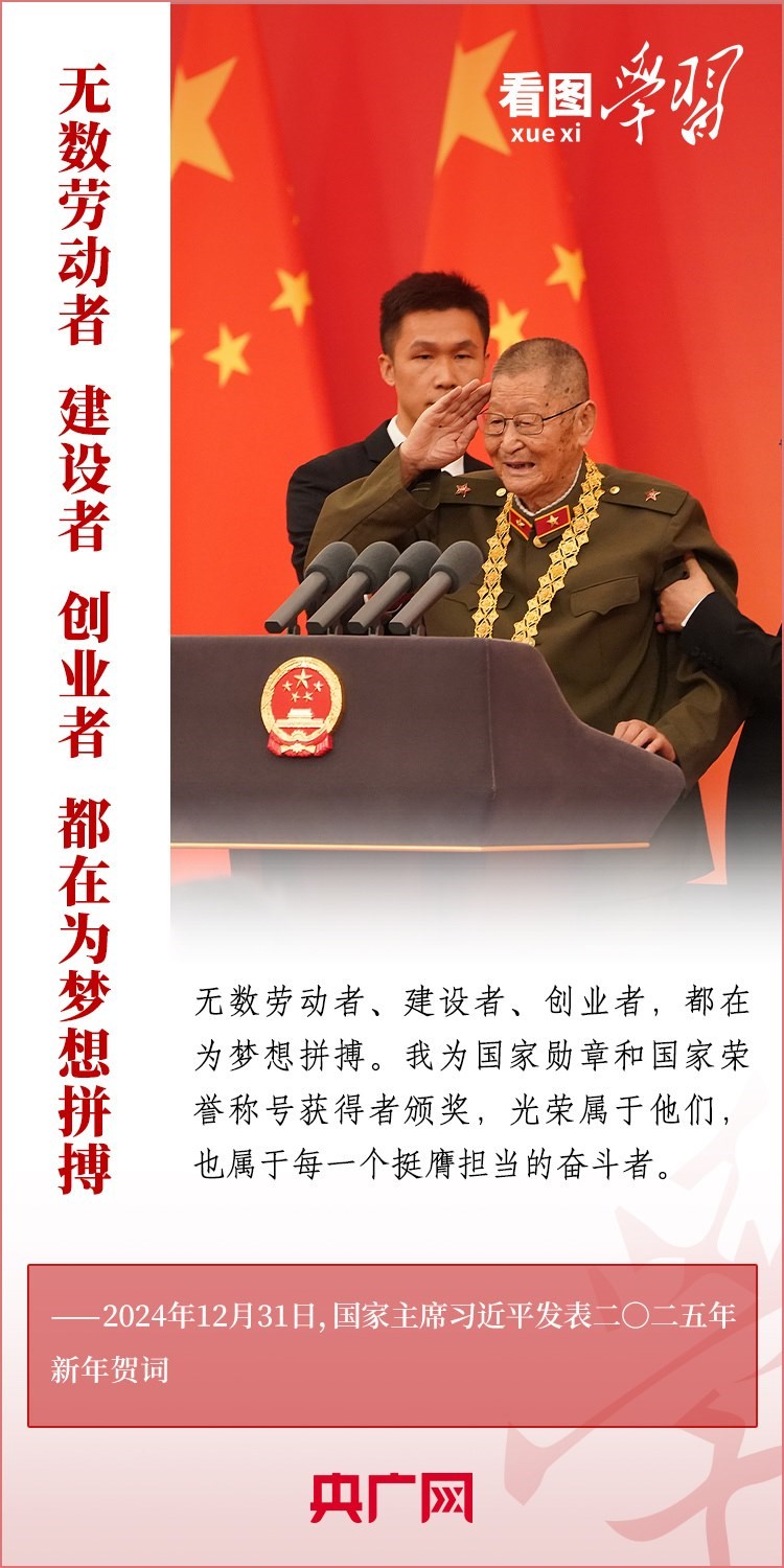 “夢雖遙,追則能達;愿雖艱,持則可圓?!毙履昵跋?,習近平主席發(fā)表二〇二五年新年賀詞。在溫暖有力的講述中,習主席深情回望過去一年中國不平凡的奮斗歷程、精彩瞬間,感慨大家一道經(jīng)歷的風雨彩虹、難忘時刻,贊美無數(shù)為夢想拼搏的勞動者、建設者、創(chuàng)業(yè)者。習主席說,中國式現(xiàn)代化的新征程上,每一個人都是主角,每一份付出都彌足珍貴,每一束光芒都熠熠生輝。讓我們充滿信心,在新的一年接續(xù)奮斗!