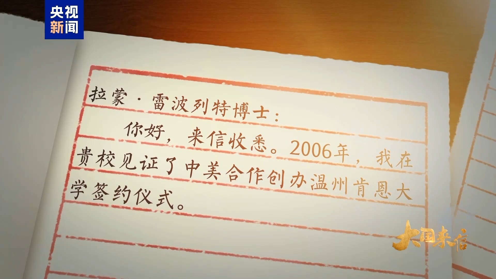 錦書云中來,尺牘傳深情。2006年,時任浙江省委書記習(xí)近平在美國肯恩大學(xué)見證了中美合作創(chuàng)辦溫州肯恩大學(xué)的簽約儀式。自2014年設(shè)立以來,溫州肯恩大學(xué)不僅培養(yǎng)了數(shù)千名中外學(xué)子,還推動了中美兩國青年一代的友好交流。去年6月,習(xí)主席復(fù)信美國肯恩大學(xué)校長拉蒙·雷波列特,鼓勵中美兩國高校加強交流合作,為促進(jìn)中美友好貢獻(xiàn)力量。