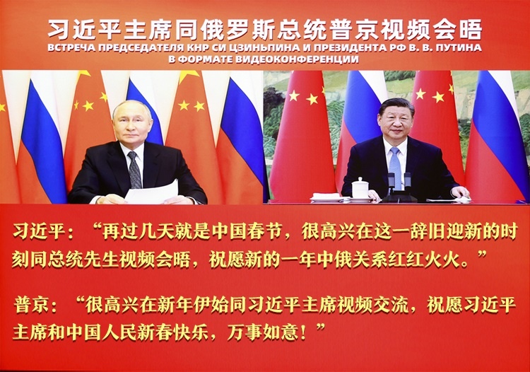 1月21日,中國國家主席習(xí)近平在北京同俄羅斯總統(tǒng)普京舉行視頻會(huì)晤,兩國元首互致新年祝福。習(xí)近平強(qiáng)調(diào),新的一年,我愿同總統(tǒng)先生一道,繼續(xù)引領(lǐng)中俄關(guān)系登高望遠(yuǎn),以中俄關(guān)系的穩(wěn)定性和堅(jiān)韌性應(yīng)對外部環(huán)境的不確定性,共同促進(jìn)兩國發(fā)展振興,維護(hù)國際公平正義。