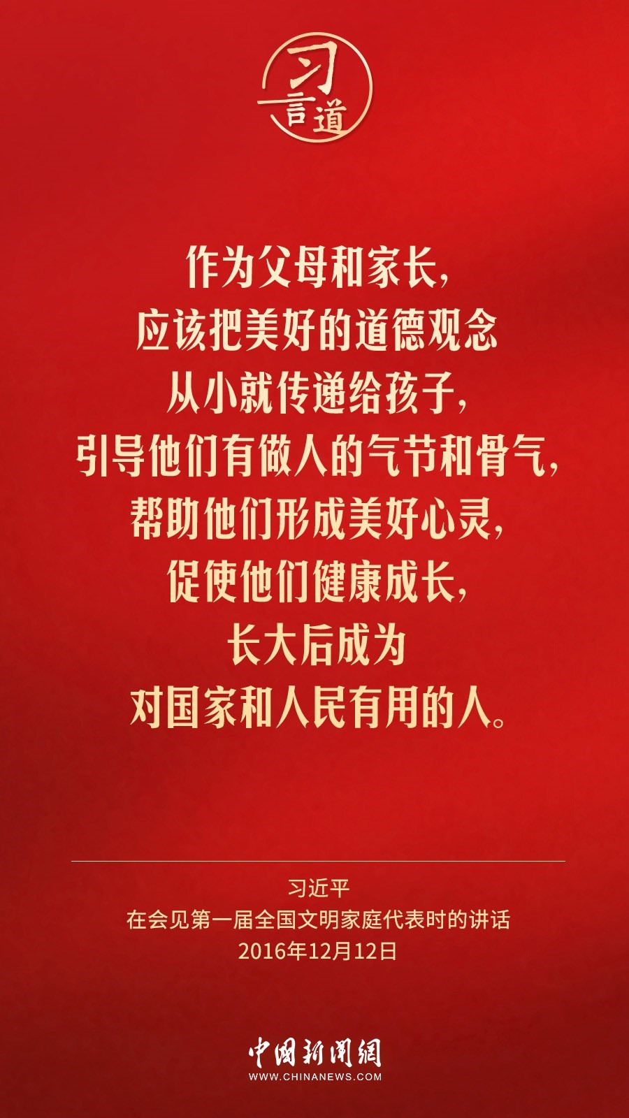 2月1日出版的《求是》雜志發(fā)表中共中央總書記、國家主席、中央軍委主席習近平2016年12月12日在會見第一屆全國文明家庭代表時講話的一部分《注重家庭,注重家教,注重家風》。