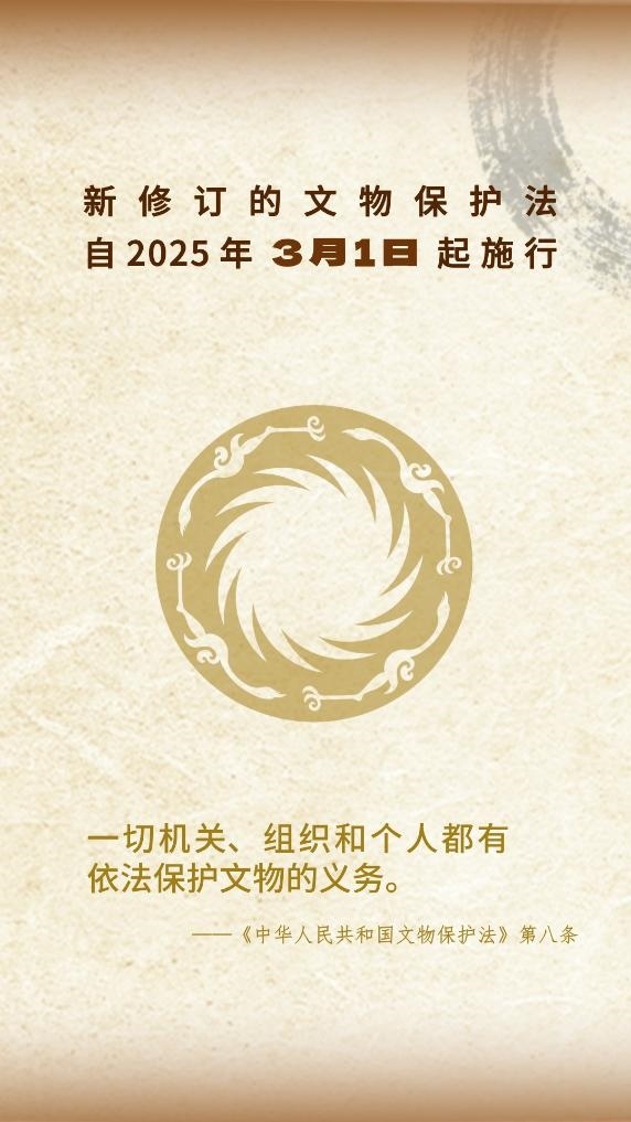 新華社北京3月1日電(記者施雨岑、胡夢雪)十四屆全國人大常委會第十二次會議2024年11月8日表決通過新修訂的文物保護法,自2025年3月1日起施行。記者3月1日從國家文物局獲悉,為切實做好相關(guān)工作,中共中央宣傳部、文化和旅游部、國家文物局、司法部、住房城鄉(xiāng)建設(shè)部、全國普法辦公室近日聯(lián)合印發(fā)關(guān)于學(xué)習(xí)宣傳貫徹《中華人民共和國文物保護法》的通知。