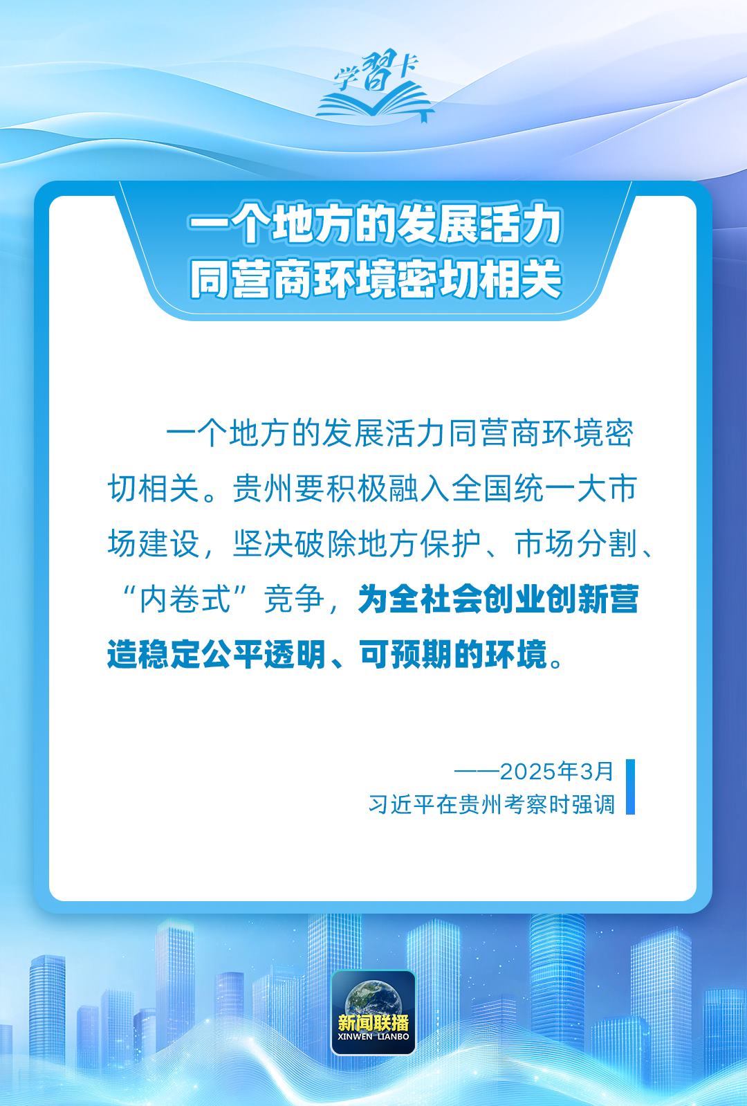 近日,習(xí)近平總書(shū)記在貴州考察時(shí)強(qiáng)調(diào),一個(gè)地方的發(fā)展活力同營(yíng)商環(huán)境密切相關(guān)。一起學(xué)習(xí)↓↓