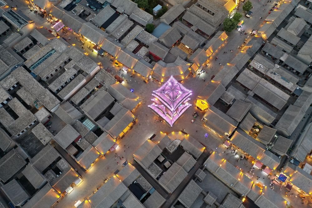 2024年7月17日,游客在太原古縣城游覽(無(wú)人機(jī)照片)。