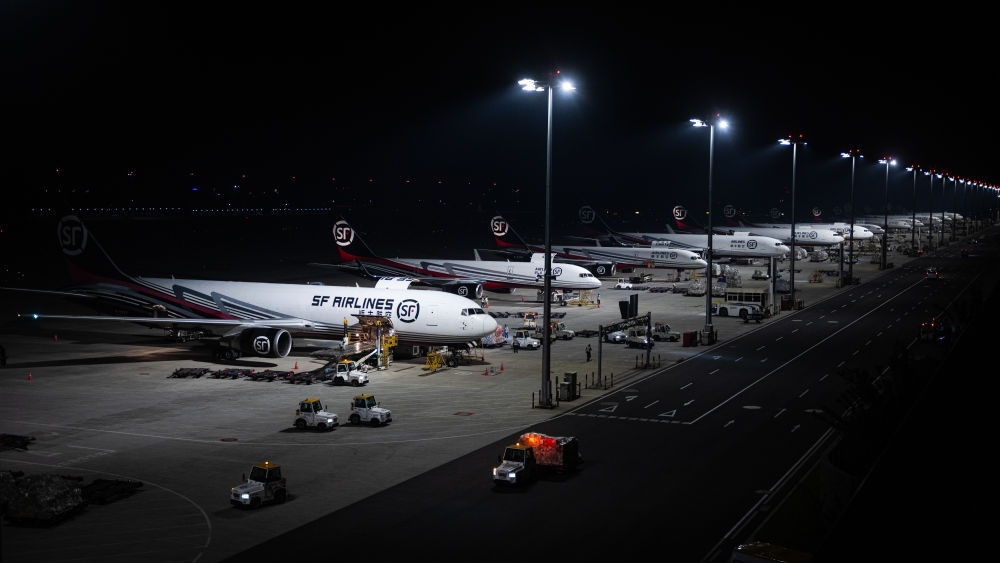 2024年5月25日凌晨,工人在湖北鄂州花湖國際機(jī)場停機(jī)坪裝卸貨物。鄂州花湖國際機(jī)場于2022年7月建成投運(yùn),是亞洲首個專業(yè)貨運(yùn)樞紐機(jī)場。截至2025年1月26日,鄂州花湖國際機(jī)場已開通37條國際貨運(yùn)航線和66條國內(nèi)貨運(yùn)航線。