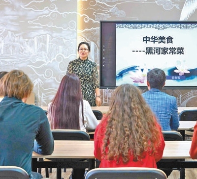 在俄羅斯布拉戈維申斯克國(guó)立師范大學(xué)孔子學(xué)院,中國(guó)老師在授課。