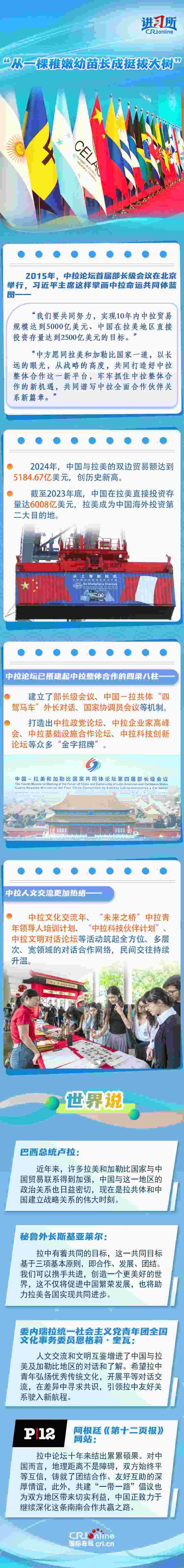 十年前,在中拉論壇首屆部長級會議開幕式上,習近平主席以“一株破土而出的嫩苗”妙喻中拉論壇。十年來,在元首外交戰(zhàn)略引領下,經(jīng)雙方精心培育,這棵“稚嫩幼苗”已“長成挺拔大樹”。拉美各界人士認為,拉中論壇十年來結出累累碩果,盡管文明形態(tài)不同,但雙方始終平等互信,鑄就了團結合作、友好互助的深厚情誼,向國際社會清晰傳遞合作共贏的時代強音。
