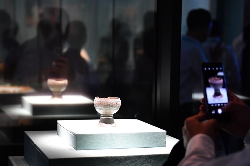 6月14日,觀眾在長沙博物館參觀“不盡長江滾滾來——長江與中華文明展”。
