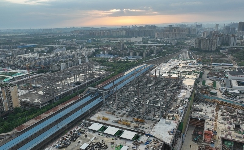 成都站位于四川省成都市,是新中國第一條自主建設(shè)的鐵路——成渝鐵路的起始站。為滿足成渝中線高鐵建設(shè)、市域鐵路公交化改造建設(shè)等需要,車站進(jìn)行了拆除擴(kuò)建。車站建設(shè)采取“分步施工、南北交替”方案,將施工區(qū)域劃分為南北兩個作業(yè)面,實(shí)現(xiàn)了鐵路正常運(yùn)輸與工程建設(shè)同步推進(jìn),完成銜接成渝、達(dá)成、寶成等多條鐵路線路的撥接與改造。