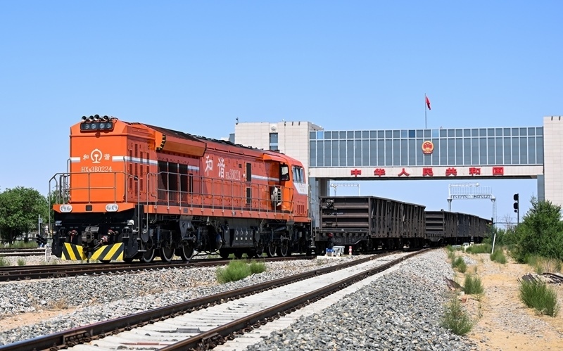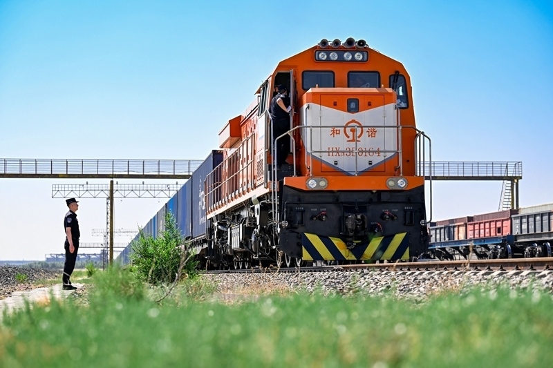 6月22日,一列中歐班列通過內(nèi)蒙古二連浩特鐵路口岸入境。