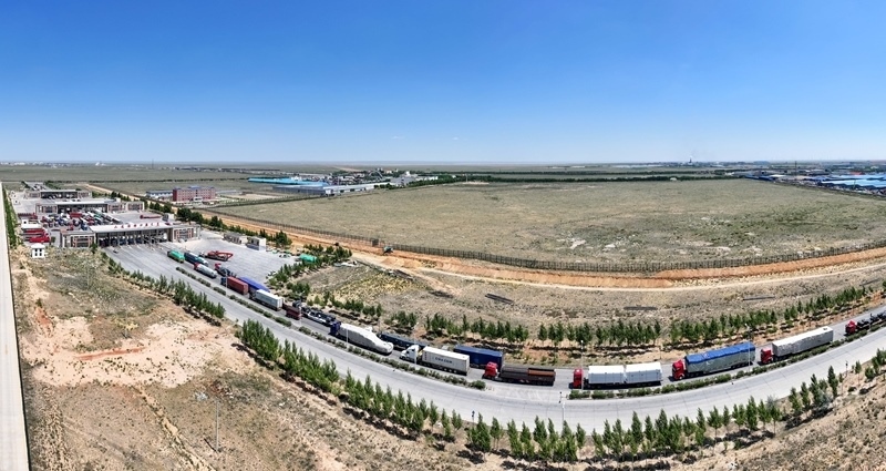 6月22日拍攝的內(nèi)蒙古二連浩特公路口岸(無人機(jī)全景照片)。