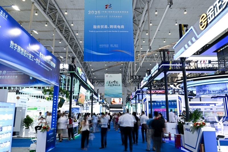 6月26日拍攝的2025(中國)亞歐商品貿易博覽會服務貿易、跨境電商展區(qū)。