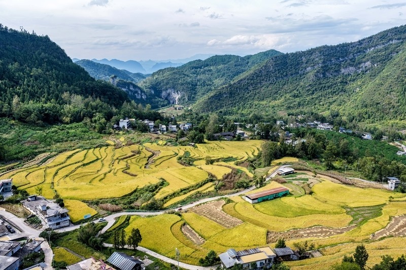 這是9月18日拍攝的重慶市黔江區(qū)五里鎮(zhèn)梯田景色(無人機(jī)照片)。