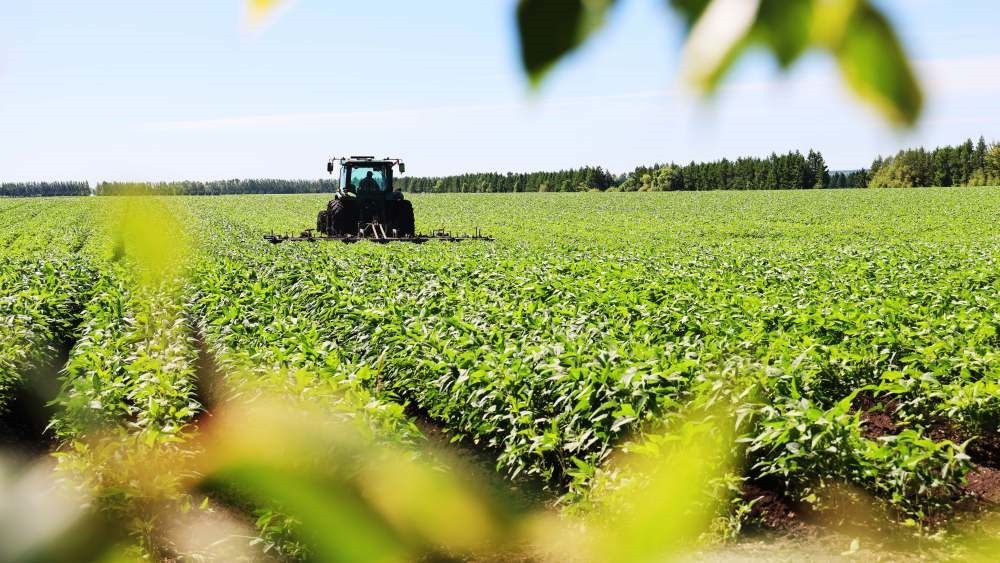 山東省東營市墾利區(qū)墾利街道種糧大戶袁訓(xùn)國撥開濃密的葉片,仔細(xì)查看大豆結(jié)莢情況?!霸蹅冞@地,以前種別的豆子一畝收300斤就不錯(cuò)了,現(xiàn)在你看這長勢(shì),畝產(chǎn)預(yù)計(jì)能超600斤!”