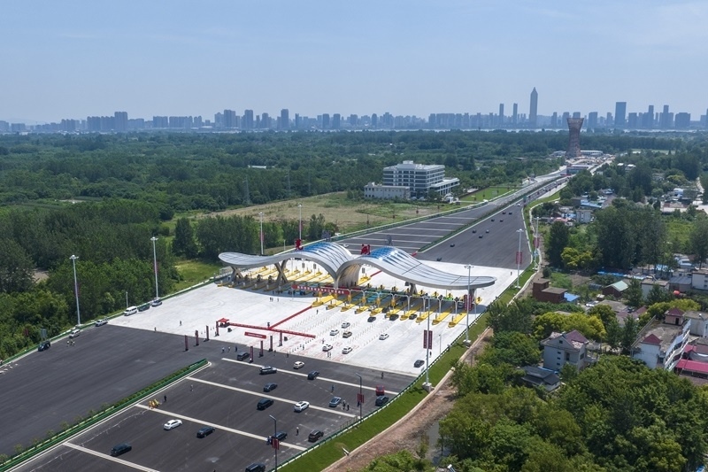 7月1日,車輛通過蕪湖龍灣長江隧道收費站(無人機照片)。