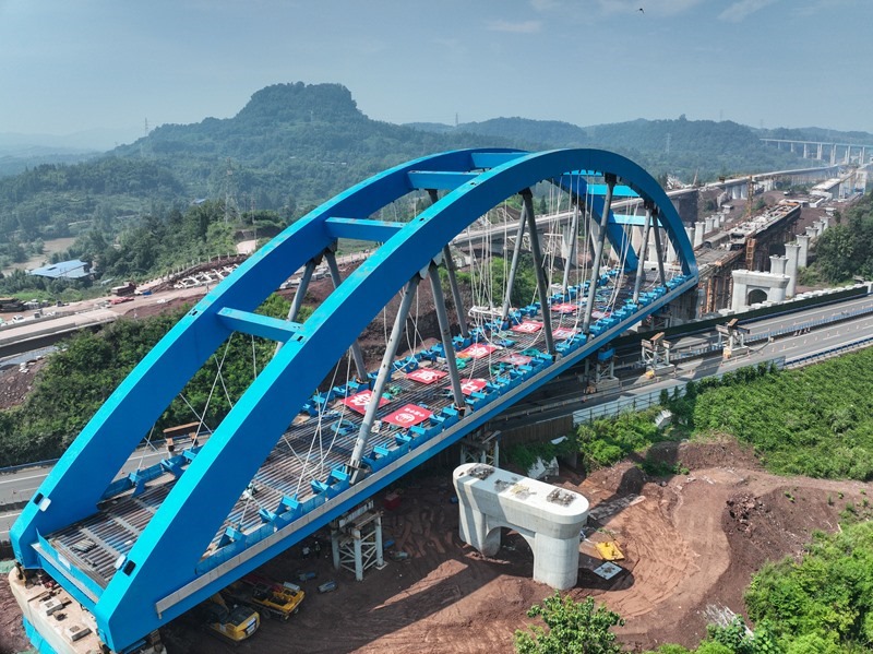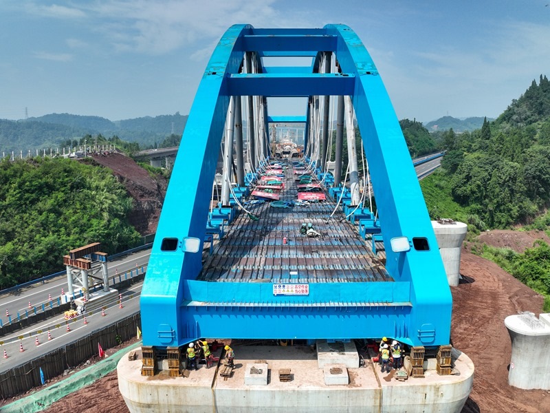 當(dāng)日,由中鐵四局承建的西渝高鐵跨營(yíng)達(dá)高速公路大橋主體平穩(wěn)落在橋墩上,標(biāo)志著全國(guó)首座高鐵大跨度網(wǎng)狀吊桿系桿拱橋頂推施工完成,為全線按期通車奠定了堅(jiān)實(shí)基礎(chǔ)。