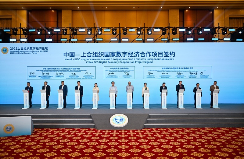 7月11日在論壇現(xiàn)場拍攝的中國—上合組織國家數(shù)字經濟合作項目簽約儀式。