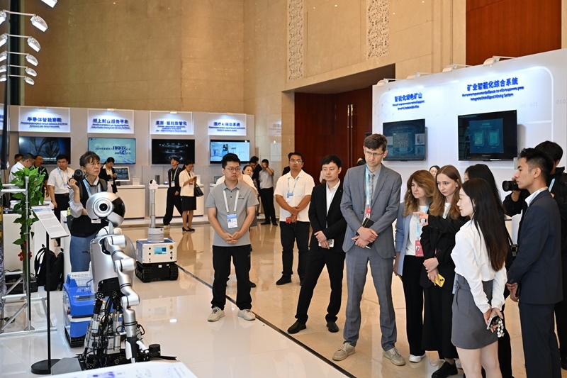 7月11日,參會嘉賓在2025上合組織數(shù)字經濟論壇互動體驗區(qū)參觀。