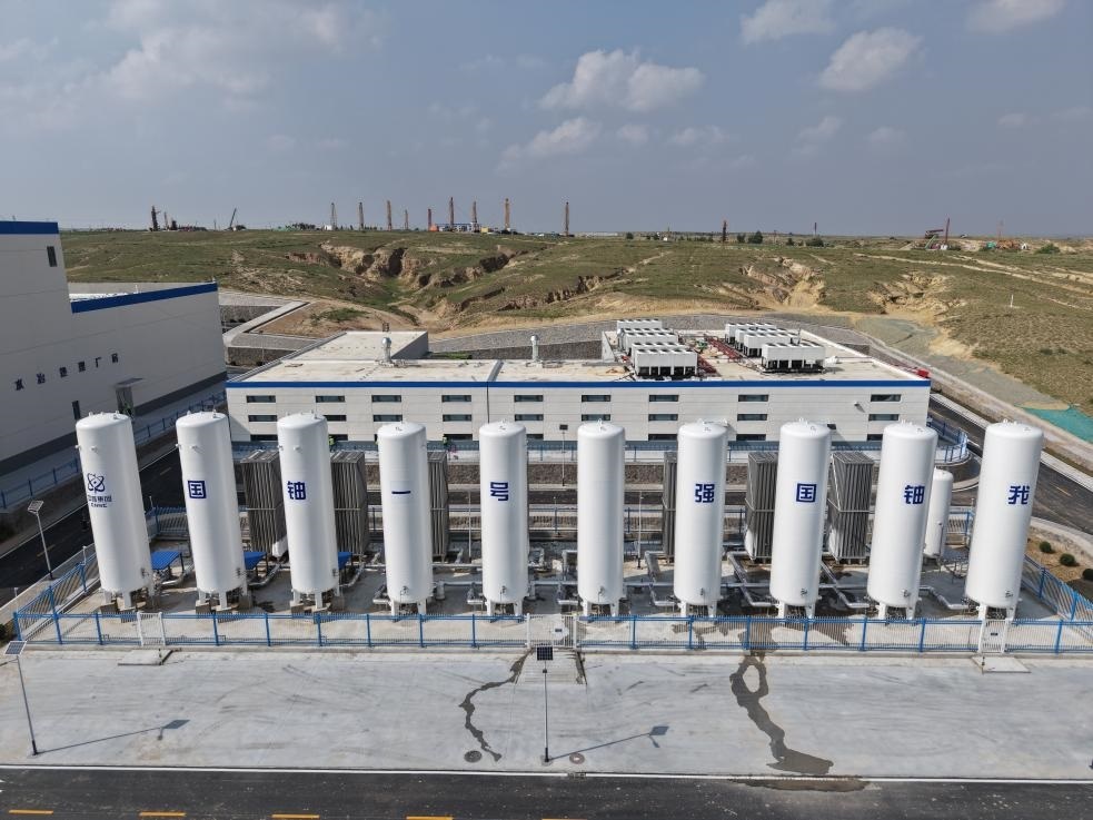 圖為“國鈾一號”示范工程地浸鈾礦山氧氣和二氧化碳氣體罐。(中核集團供圖)