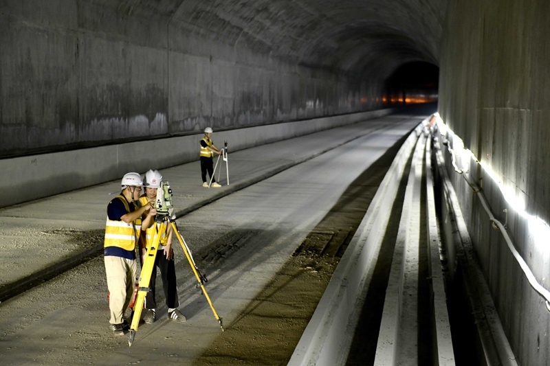 7月30日,在濟(jì)濱高鐵機(jī)場隧道內(nèi),中鐵十局的工作人員進(jìn)行全斷面掃描,以獲取隧道內(nèi)幾何形態(tài)。