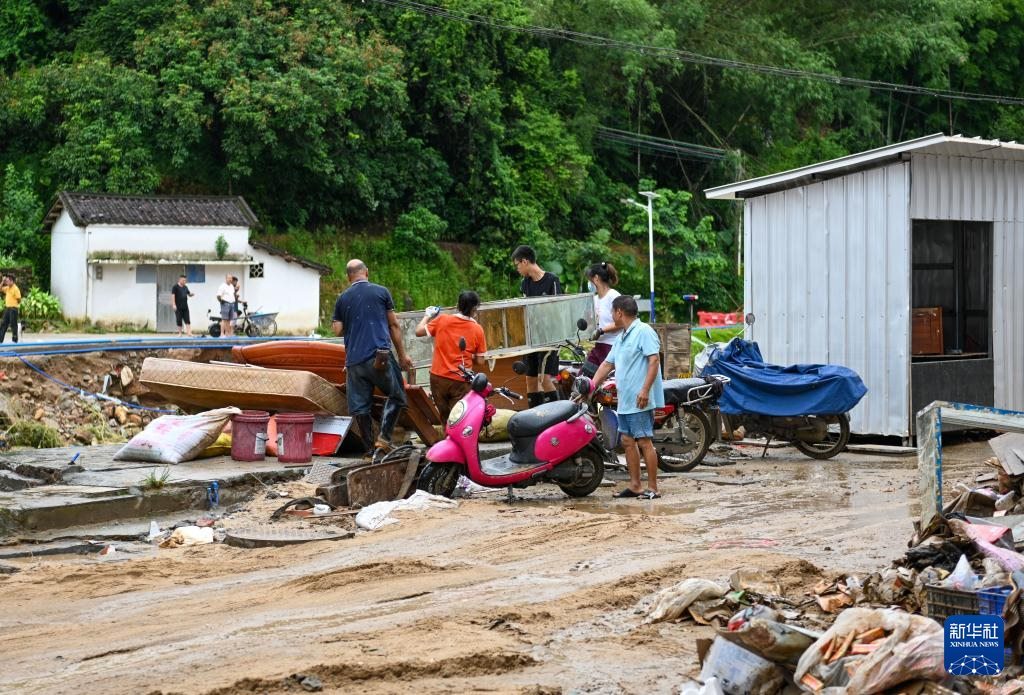 8月6日,村民在廣東清遠(yuǎn)佛岡縣石角鎮(zhèn)黃花村搬運(yùn)受損家具。