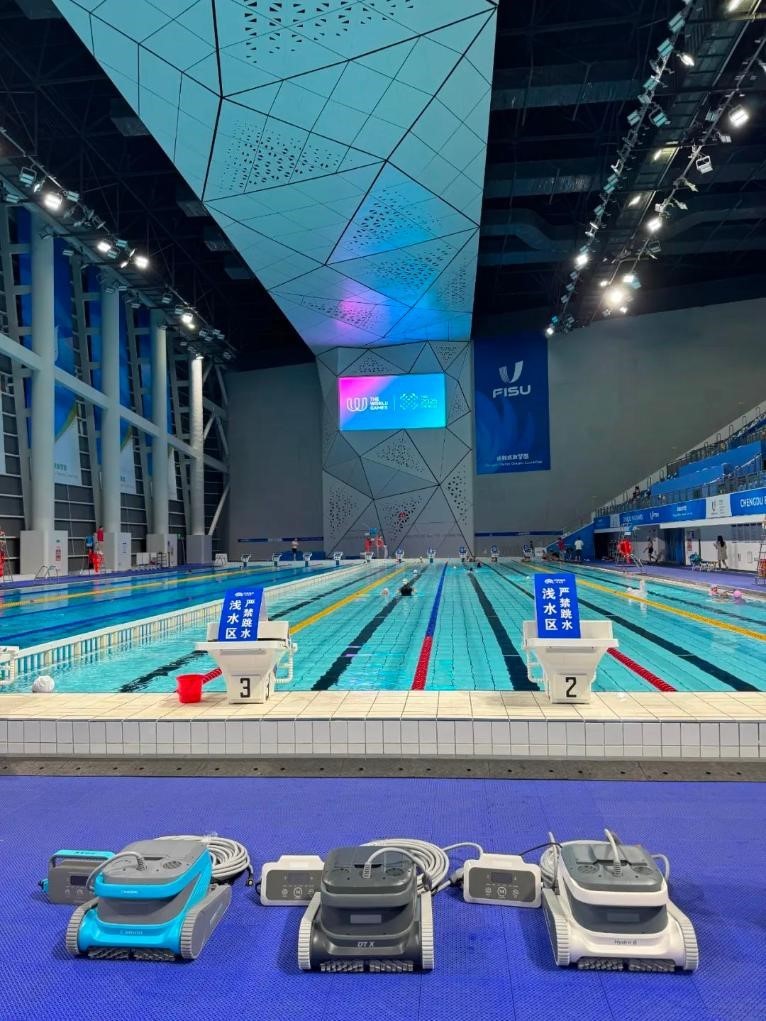 13日,世運(yùn)會(huì)皮艇球項(xiàng)目在簡(jiǎn)陽(yáng)文體中心游泳館開(kāi)賽,與運(yùn)動(dòng)員們一同出現(xiàn)在泳池里的還有幾位特殊的“清潔工”。據(jù)場(chǎng)館工作人員介紹,賽事期間場(chǎng)館投入了泳池清潔機(jī)器人設(shè)備,完成對(duì)泳池的日常維護(hù)及清潔任務(wù)。