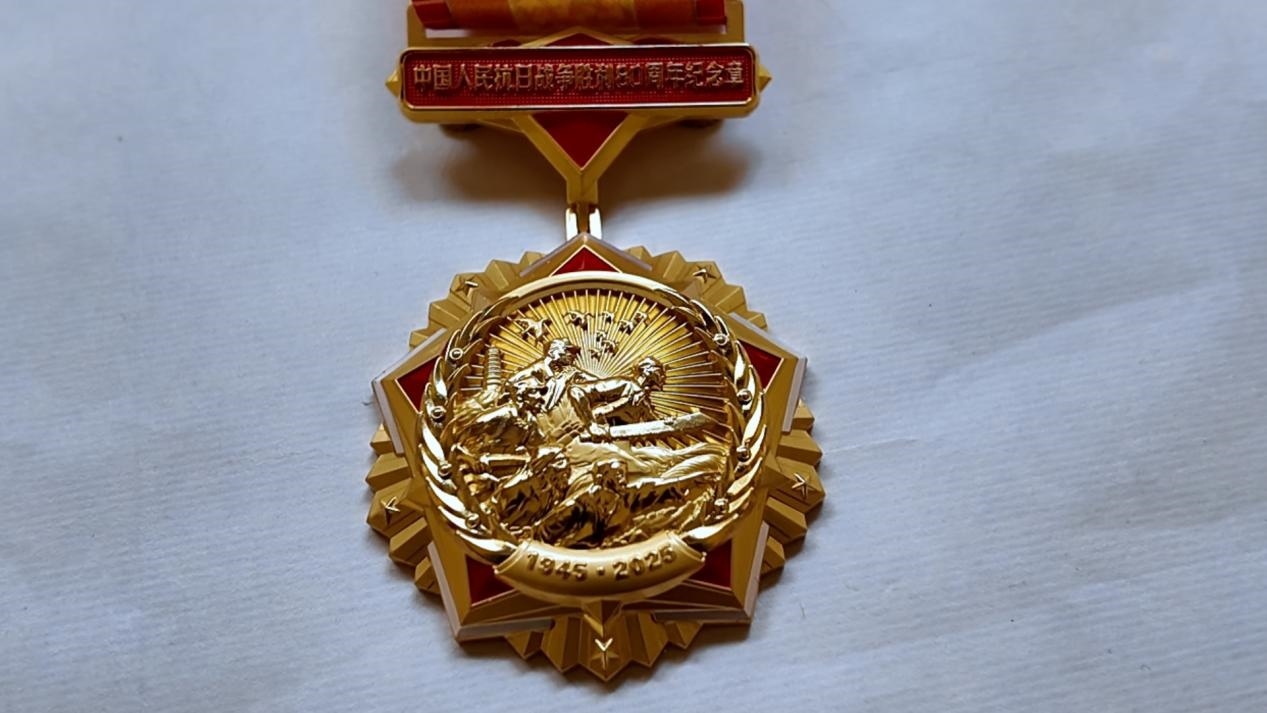那枚中國人民抗日戰(zhàn)爭勝利80周年紀念章,